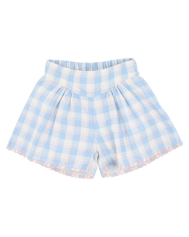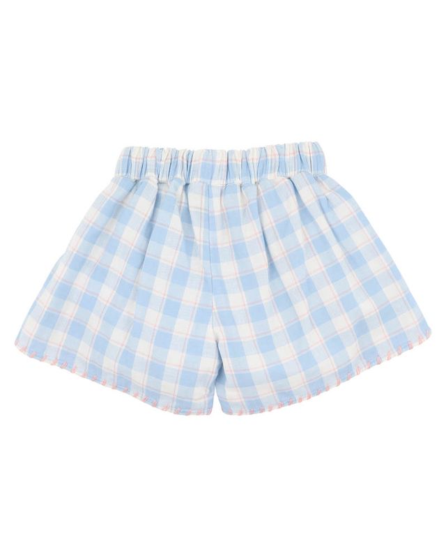 Sweet, soft and full of charm, these check shorts are perfect for sunny day adventures. Made in a pastel check with soft gathers and finished with contrast pink blanket stitch along the hem, these shorts are designed for playful comfort and style. Pair them with the Bonnie Flower Tee for a coordinated look that’s picnic-ready.