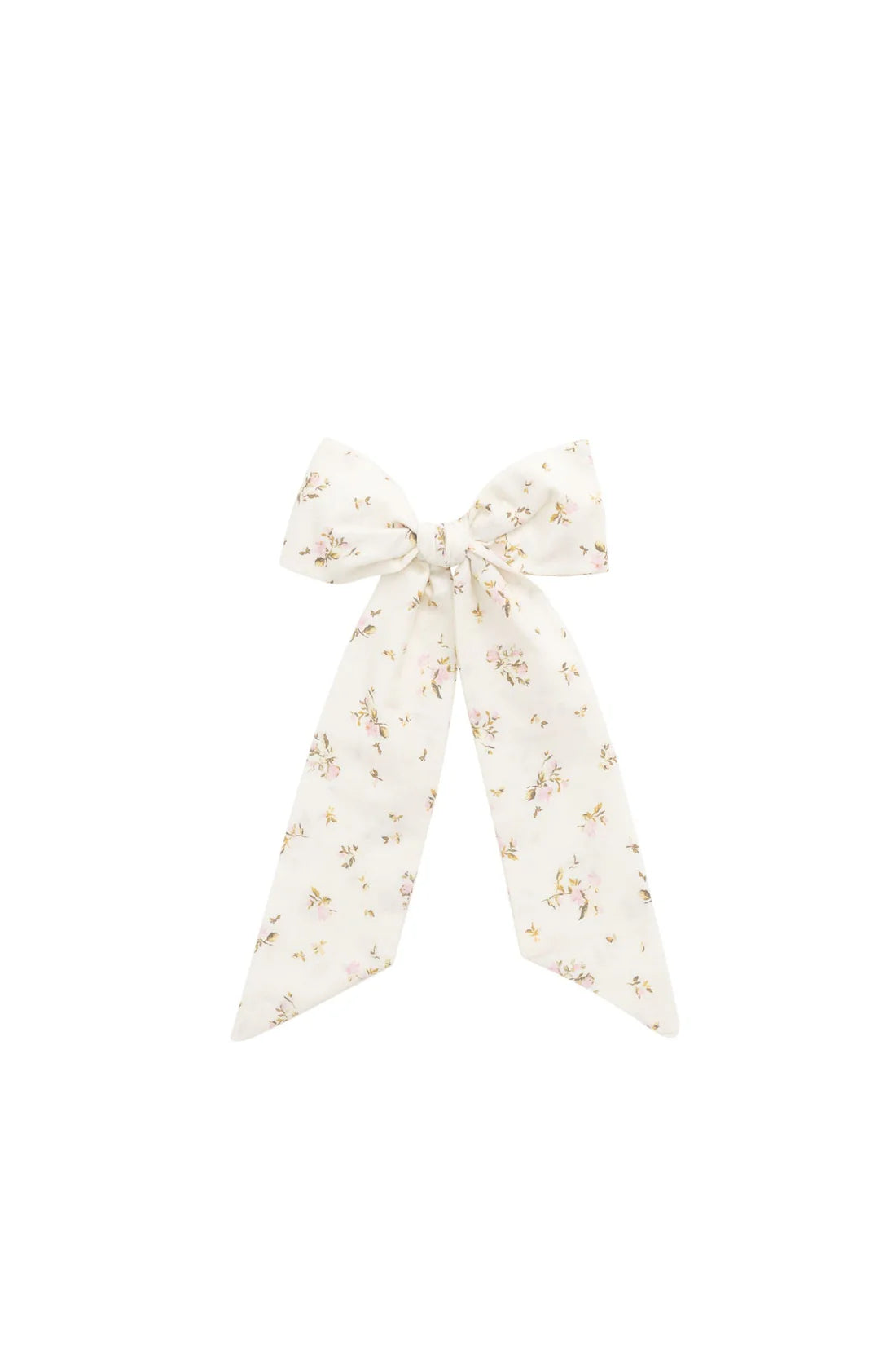 Add a romantic flourish to your little one’s outfit with our Organic Cotton Alora Bow - Bianca Antique. This beautifully oversized bow features a soft white base adorned with a delicate floral pattern, tied with long flowing tails for an elegant finish. Whether worn for a special occasion or everyday charm, it’s the perfect accessory to complete any look.