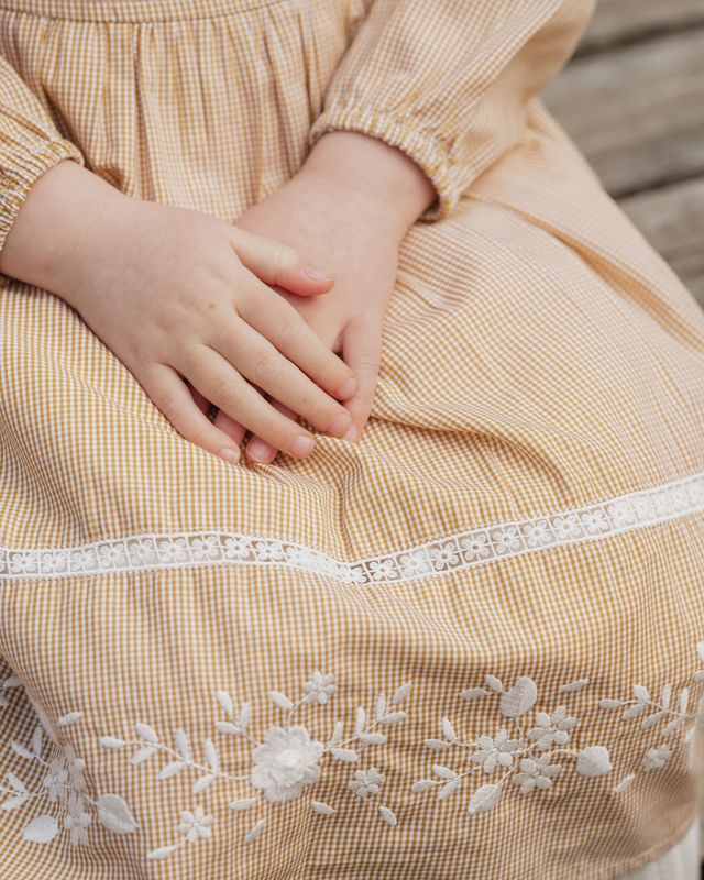 A beautiful dress made for picture-perfect days and special moments, this sweet gingham style is full of charm. With pretty frill detailing and delicate floral embroidery along the hem, it’s a lovely piece for outings, celebrations or simply feeling a little extra special.