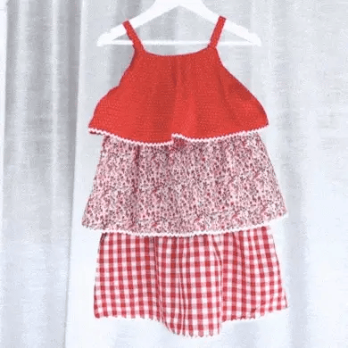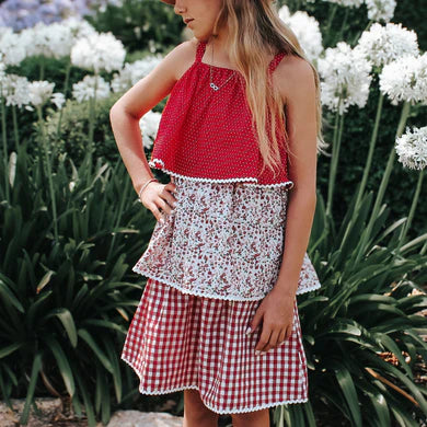 Bring a touch of sweetness to her wardrobe with our girls’ tiered dress. Featuring three flowy layers, this dress offers a light and airy feel, perfect for warmer days. The beautiful pink check pattern adds a timeless charm, while delicate lace detailing completes the look with a touch of elegance.