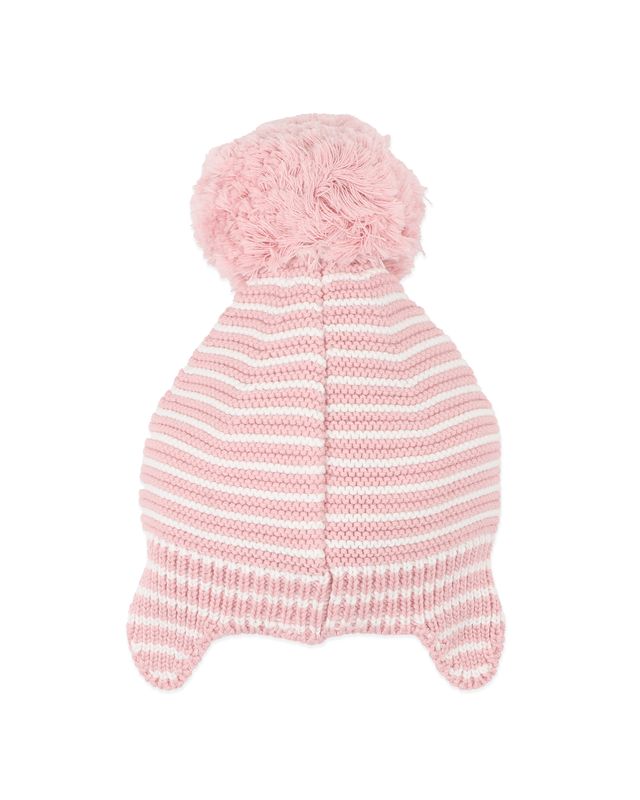 Designed to keep little heads warm and cosy on cooler days, this sweet knitted beanie blends comfort with charming detail. Crafted from soft organic cotton, it features a classic striped knit with snug ear flaps for extra warmth and coverage. Finished with a playful contrast pom pom on top, it’s a winter essential that feels as lovely as it looks—perfect for everyday outings, pram walks and chilly adventures.