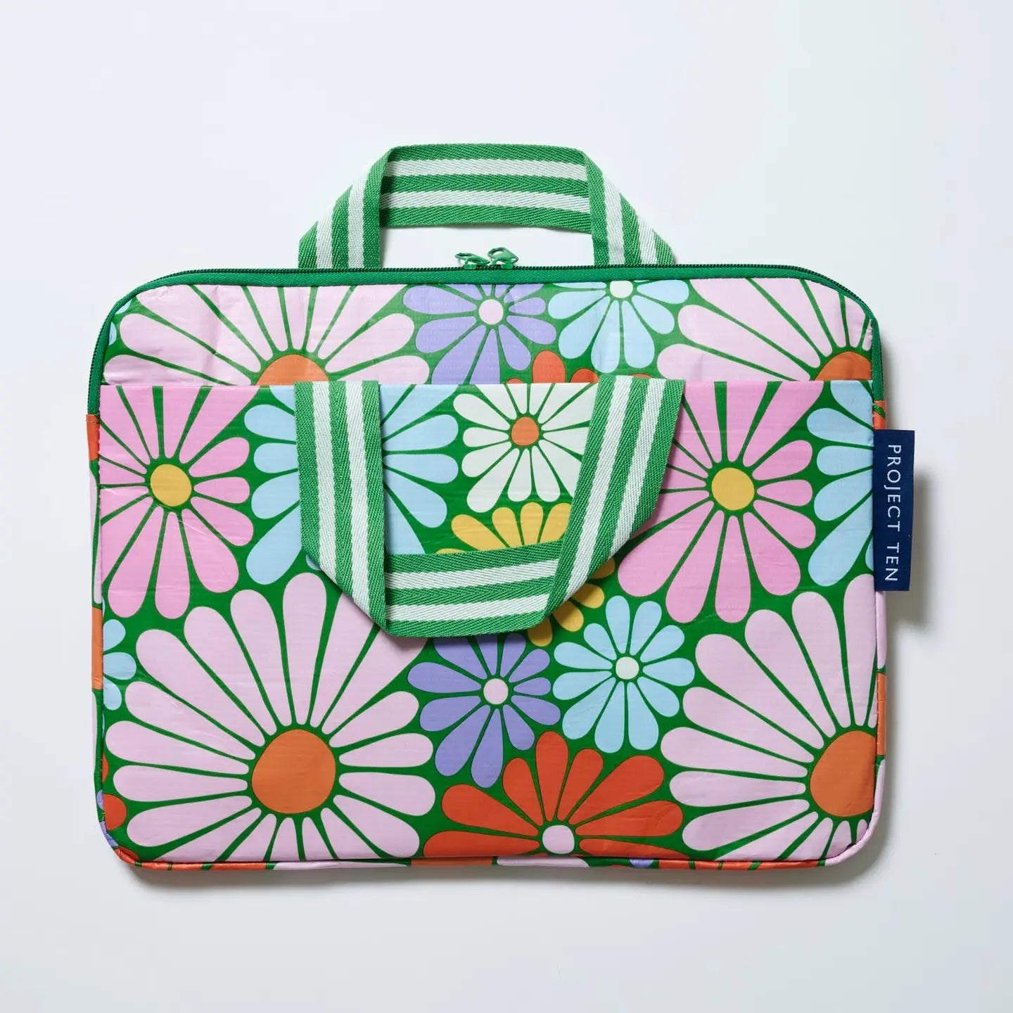 Details: – Height 26cm | Width 35cm. – Fits most laptops up to 14". – Velcro side pocket. – Soft woven handles. – Lined with lightly padded Ecru RECYCLED plastic (RPET). – Matte finish, sturdy woven RECYCLED plastic (RPET). – Wipe clean. Note: Print placement will be different on each product to prevent wastage of fabric.