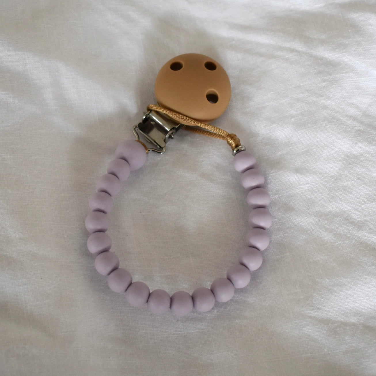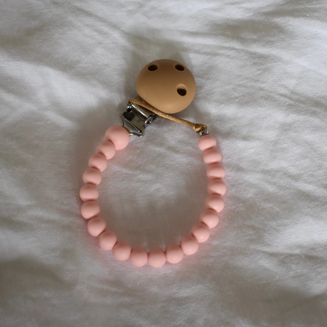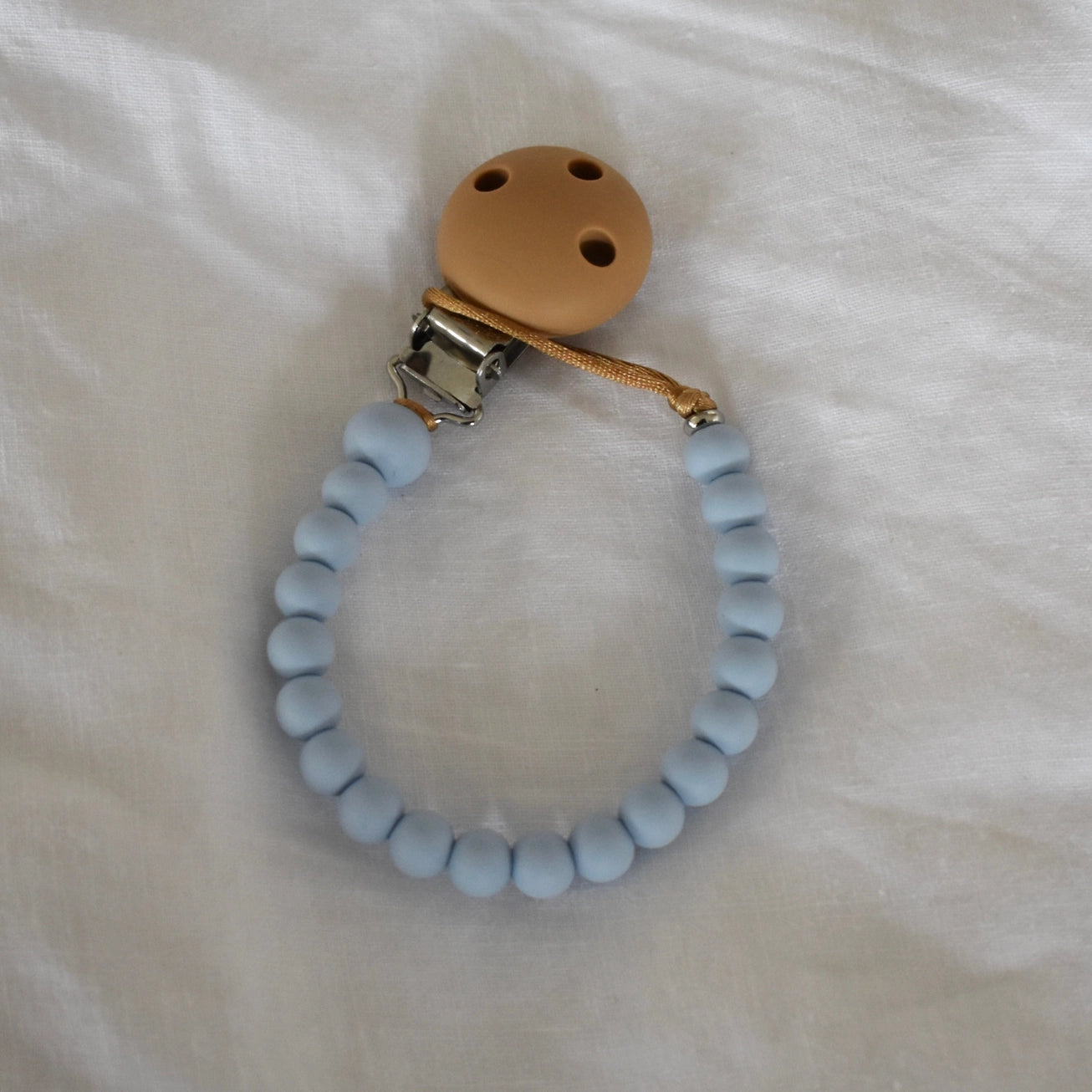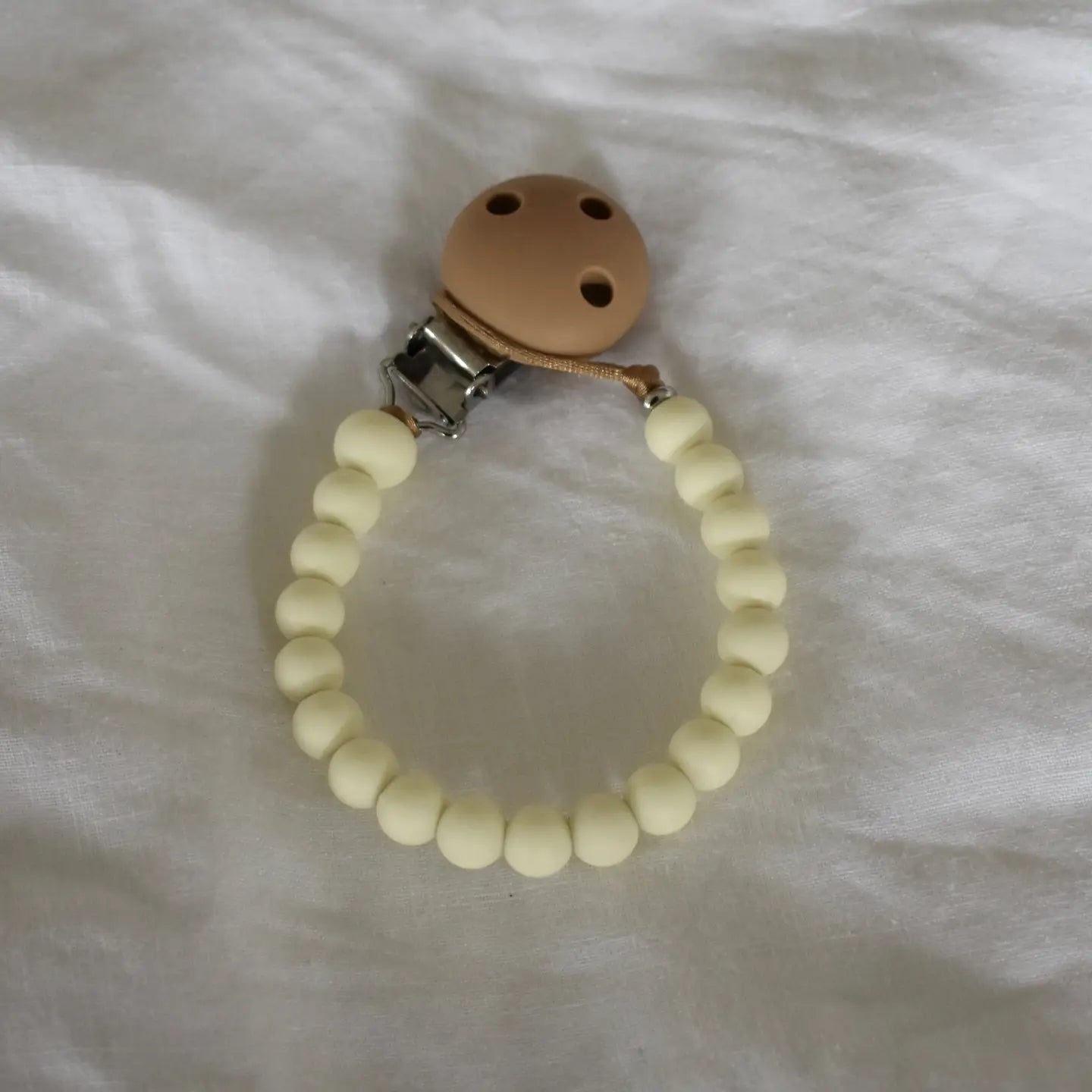 Save dummies from the floor with these cute, durable and safe dummy clips! We have a wide range of colour combos available, including brights, pastels, neutrals & on-trend seasonal colours. Check our other listings for more colours! Made with silicone beads on a tough oatmeal coloured satin nylon cord, our Dummy Clips are perfect for drooly, grubby bubs - simply wipe with a damp, lint-free cloth or a baby wipe and you’re good to go! The end bead is a sturdy metal bead that ensures the silicone beads can’t be pulled over the knot (which is unlikely but as silicone beads are very stretchy, without the metal bead it could happen). Our design has been laboratory tested and certified so you can rest assured you are purchasing the best for your baby.