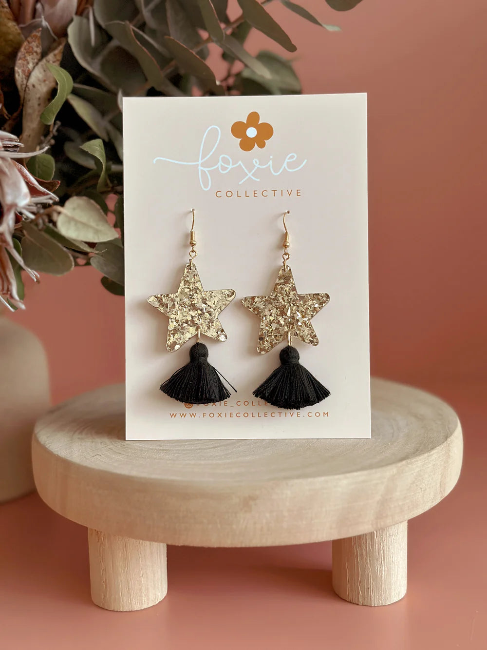 Foxie Collective - Star Dust Dangles | Gold Sparkle + Black