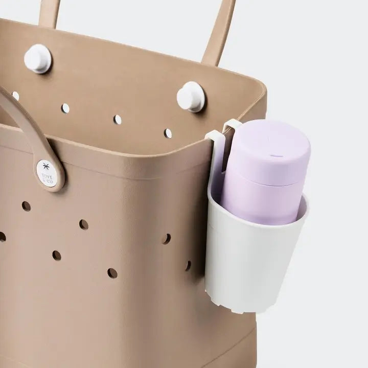 Made from durable, heavy duty plastic that is easy to clean, these cup holders are designed to seamlessly attach to any Tribe Kove & Co bag. Each cup holder features a generously sized well that can accommodate tall coffee cups as well as water bottles. The sleek white colour blends nicely with the neutral tones of the Tribe bags.