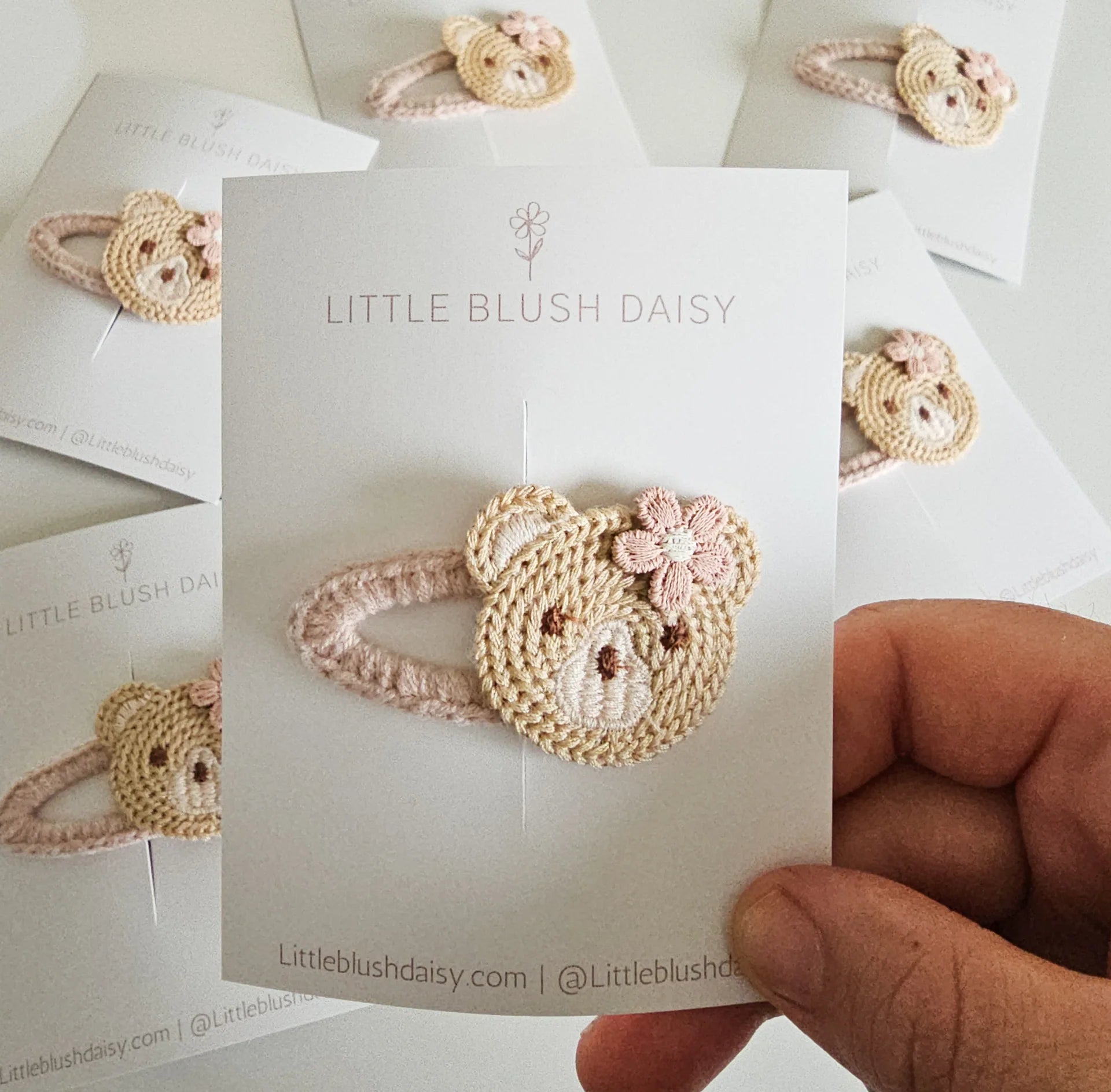 Little Blush Daisy - Crochet Teddy Bear Snap Hair Clip