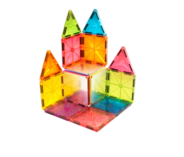 What is Included: 15 magnetic pieces, including 4 Mirrors, 7 Glitter tiles and 4 Triangles.